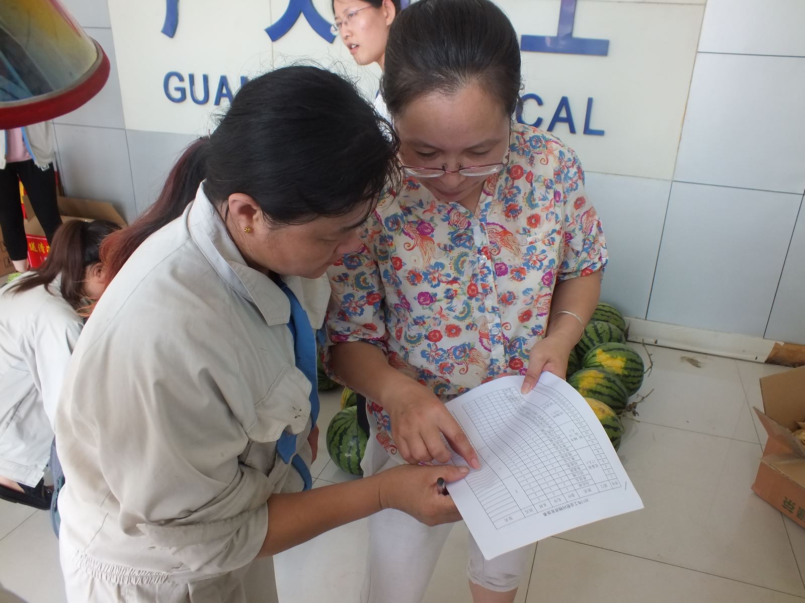 經(jīng)過一上午的準(zhǔn)備,所有的西瓜在整齊擺放,讓員工們第一時間吃上清涼可口的西瓜,緩解炎熱高溫帶來的疲憊。